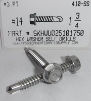 - #14X1-3/4 HEX WASHER HEAD SELF DRILLING SCREW #3 POINT 410 STAINLESS STEEL