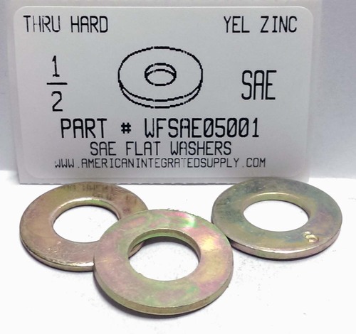 1/2 SAE FLAT WASHER THRU HARDENED STEEL YELLOW ZINC PLATED 1-1/16" OUTER DIAMETER