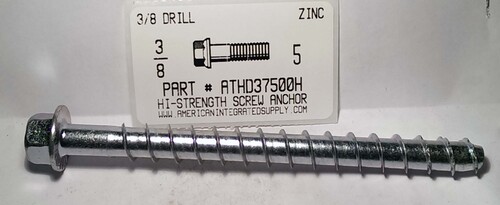 3/8X5" HEX WASHER HEAD CONCRETE SCREW ANCHOR STEEL ZINC USE 3/8 DRILL