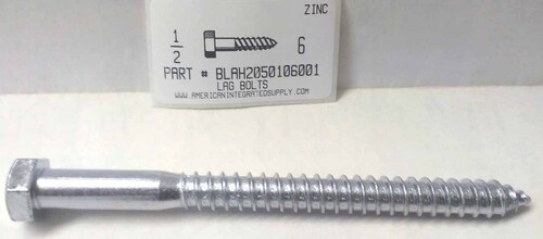 1/2X6 HEX HEAD LAG BOLT STEEL ZINC PLATED